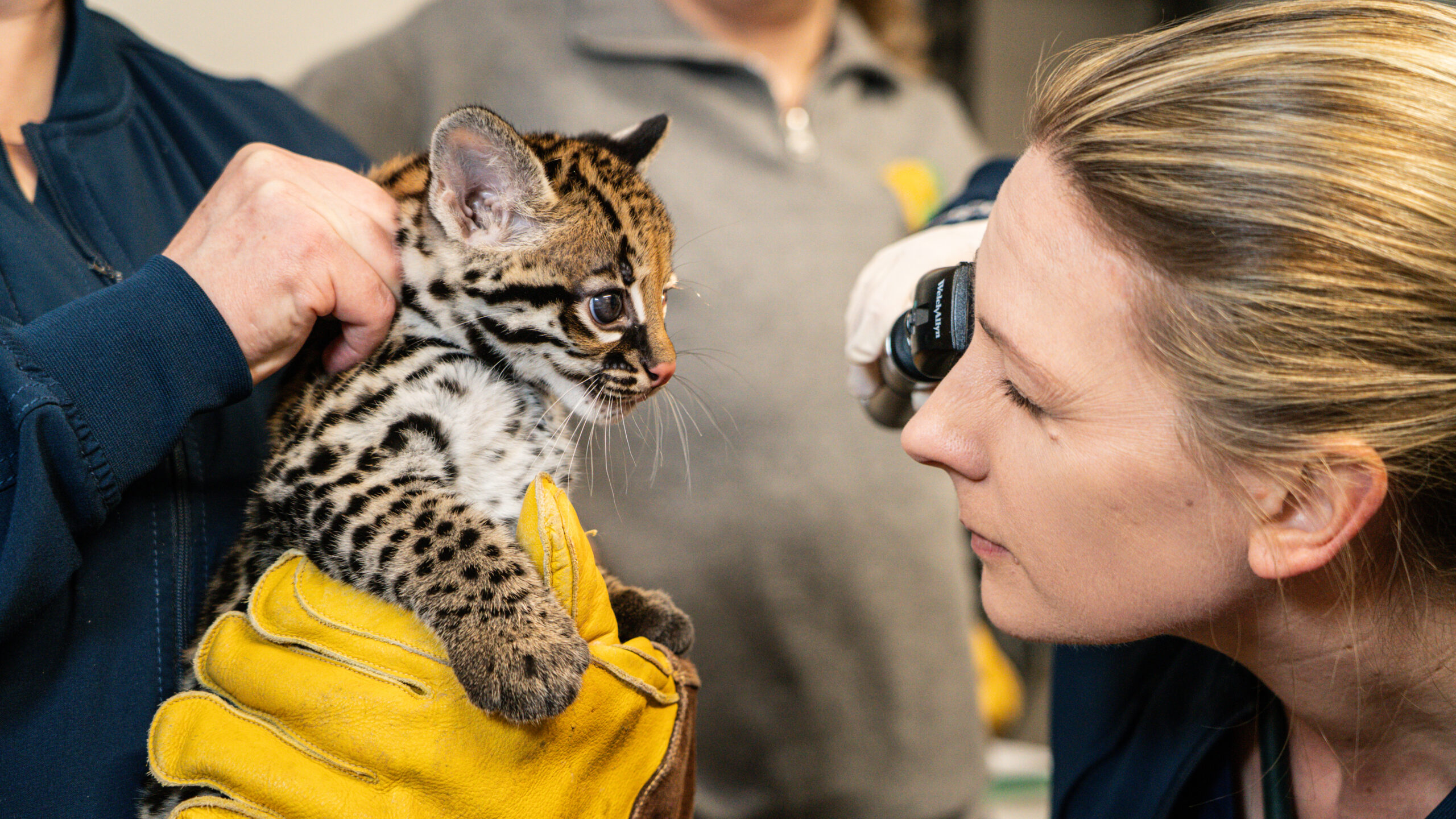 Ocelots are solitary, nocturnal cats who prefer to spend their time in underbrush and are rarely observed. They almost always give birth to a single kitten, meaning they put a lot of time and energy into making sure that kitten survives. That involves hiding it away until it’s old enough to start learning how to be an ocelot. For us, “hands off” truly meant hands off. We watched cameras, but we physically did not lay eyes on the kitten until it left the den box for the first time over a month later. That didn’t mean we weren’t carefully watching for various milestones, like the first time it opened its eyes, or the first time we saw it play.