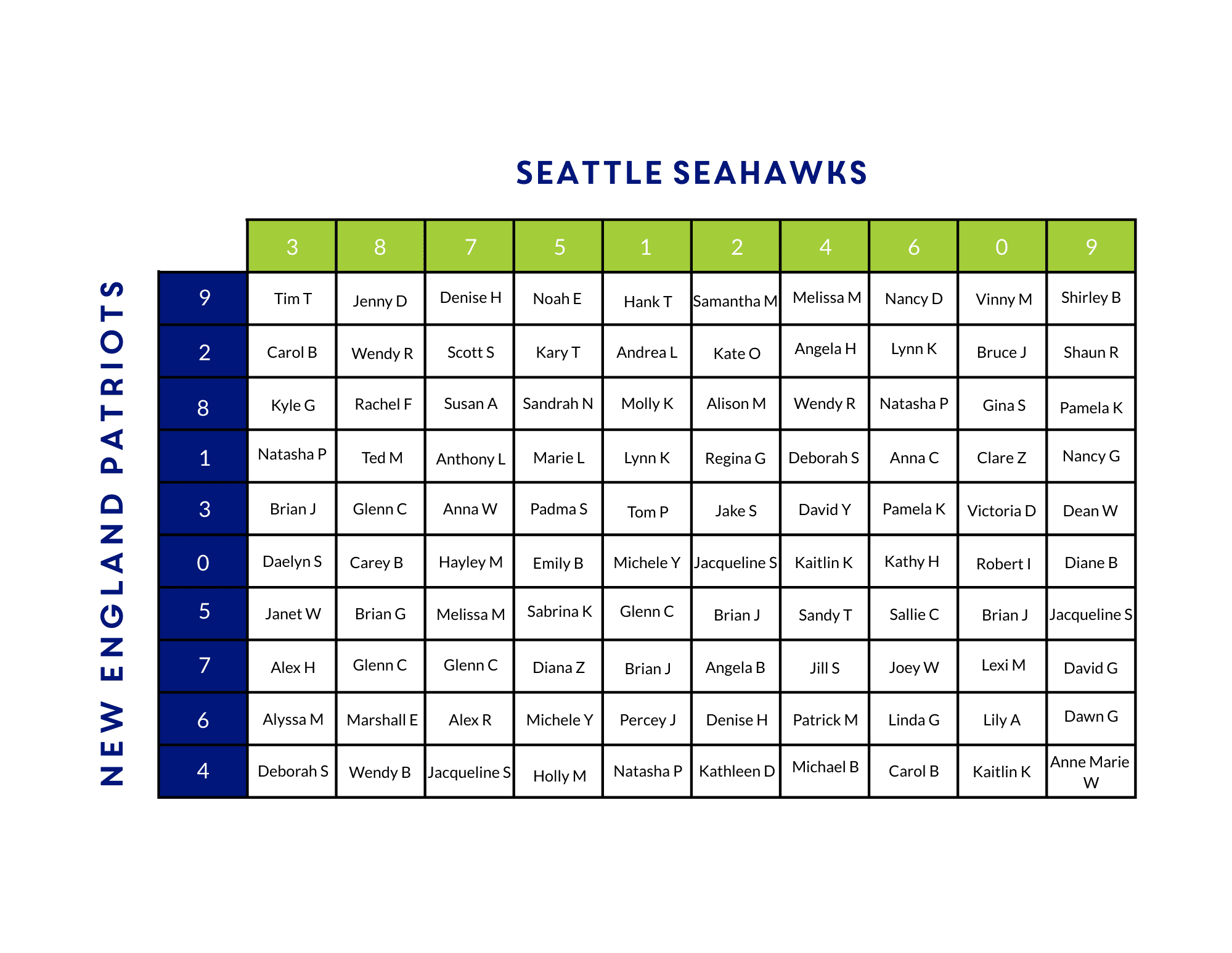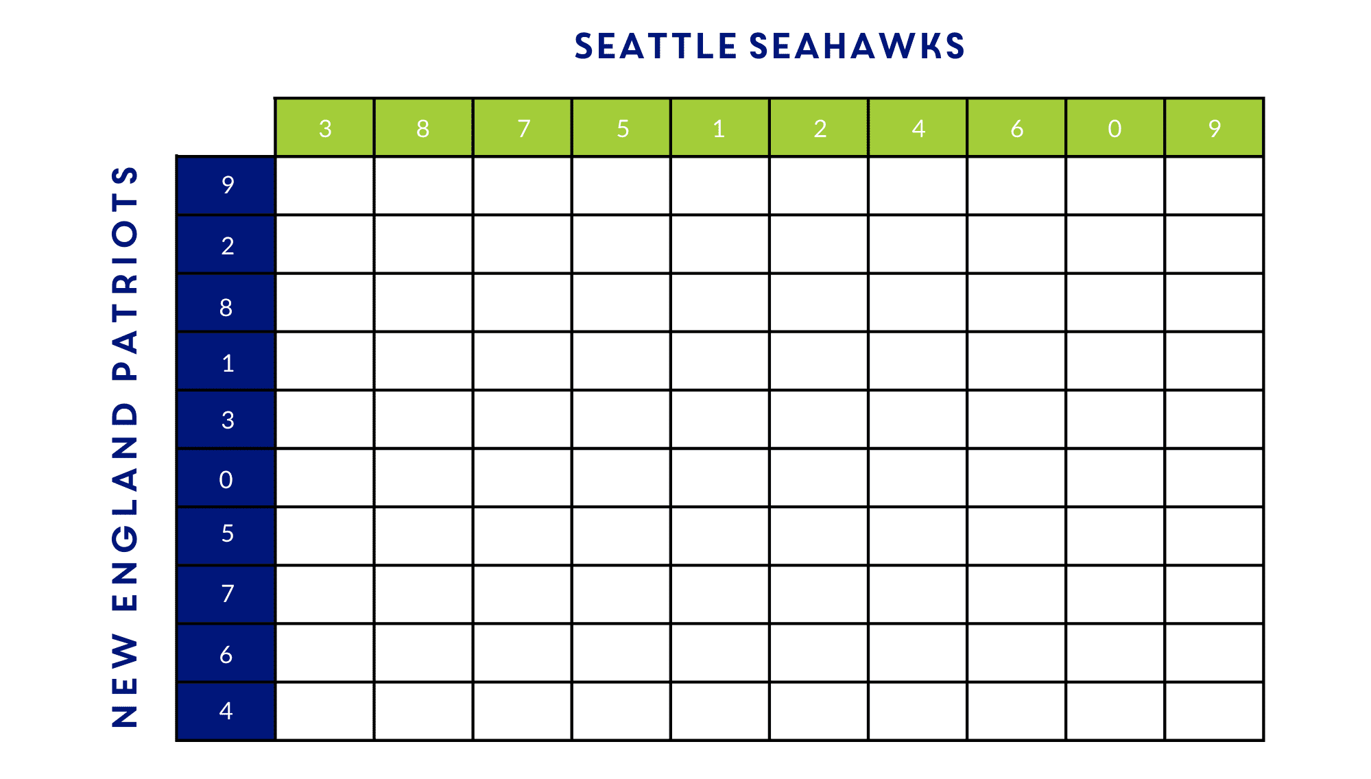 - Team scores along the X and Y axis of the grid will be assigned randomly.